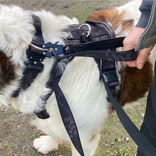 We zijn helemaal tevreden met deze geweldige riem! We kunnen onze "Hugobaby" nu veilig door lastige situaties leiden zonder bang te hoeven zijn dat de karabijnhaak of de riem breekt. Hij ligt heerlijk in de hand en is tactisch perfect voor ons. Fantastisch!